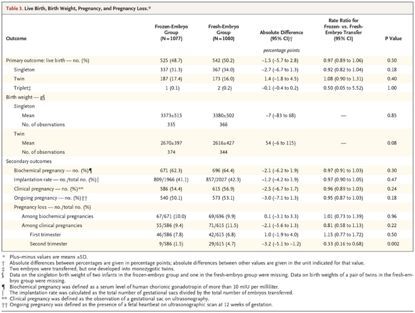 [3] Shi Y , Sun Y , Hao C , et al. Transfer of Fresh versusFrozen Embryos in Ovulatory Women[J]. New England Journal of Medicine, 2018,378(2):126-136.
