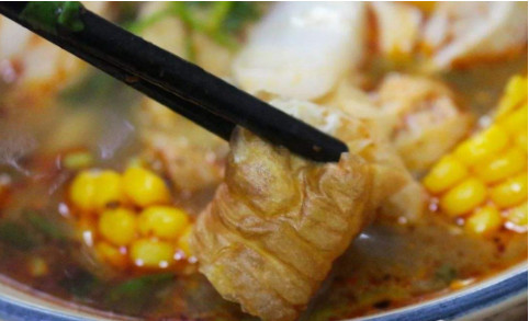 第三种是油条。对于油条来说,有人喜欢刚出锅的。但是,麻辣烫里的油条却别有一番风味。由于油条本身是很蓬松的,所以它能吸收很多的汤汁。更重要的是,油条很涨肚子,吃下几份之后基本上就饱了。