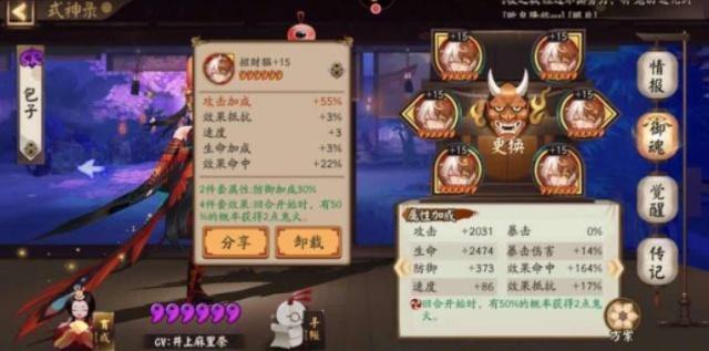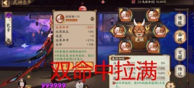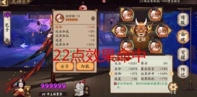 除此之外在3号位置的御魂上也是非常极品。我们都知道2号位置的副属性速度可以是16,17,甚至于18,之所以这样是因为在网易阴阳师御魂之中拥有小数点的存在,在每次加强的时候都会拥有最高的小数点以及最低的小数点,积累下来就能够出现16,17,18这样的副属性。在效果命中之中加到满的时候会出现的是21,22,23。那么各位阴阳师们都就知道该3号位置的效果命中到底有多么极品了吧?