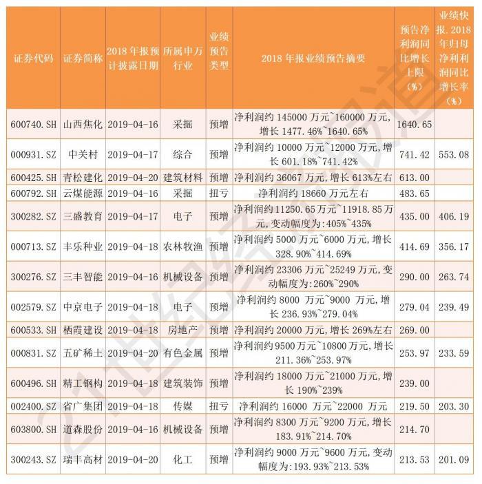 山西焦化预增幅度最高。其表示,经财务部门初步测算,预计2018年年度实现归属于上市公司股东的净利润为145,000万元~160,000万元,与上年同期(9,191.97万元)相比,预计增加135,808.03万元~150,808.03万元,同比增加1477.46%~1640.65%。