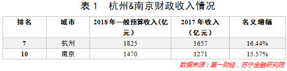 如果说GDP是城市的“面子”,那么财政收入就是城市的“里子”。根据第一财经统计的2018年各大城市财政收入情况,杭州和南京的钱袋子表现同样出色,增速分别高达16.44%和15.57%,在各大城市中分别排在第7位和第10位(参见表1)。