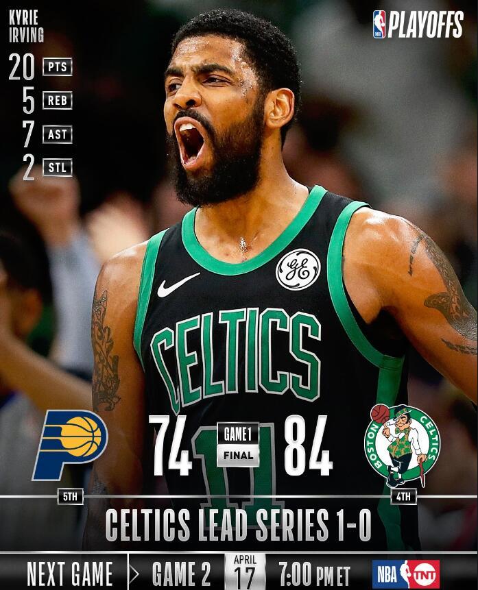 虽然步行者在上半场取得领先,但是中场休息回来后,在欧文的带动下,凯尔特人逆风翻盘,让步行者在下半场仅拿到29分,最终以84-74拿下比赛。