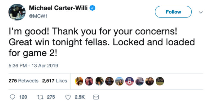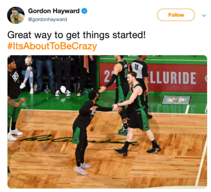 虽然波士顿凯尔特人队常规赛中磕磕绊绊,但季后赛,谁也不敢小看他们。今天的比赛,绿衫军击败步行者,系列赛总比分1-0领先。比赛结束之后,海沃德更新社交媒体,然后写道,“一种非常棒的方式开启季后赛。”