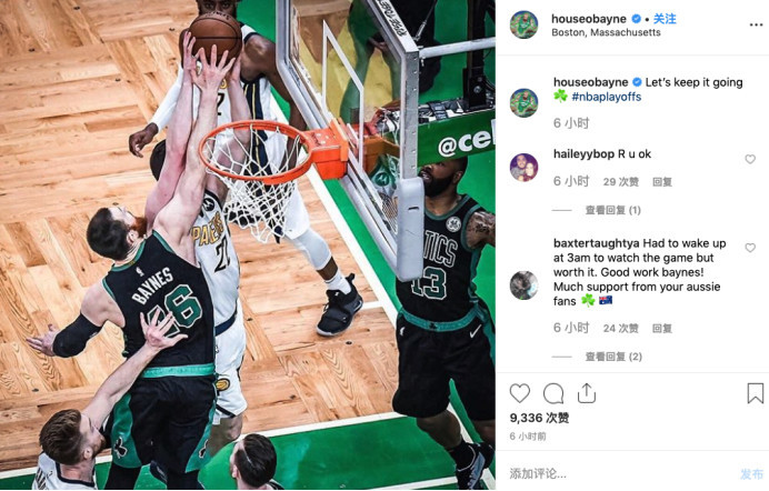 今天的比赛,贝恩斯2投1中,得到了2分9篮板。比赛结束之后,贝恩斯也在社交媒体上,晒出了自己封盖对手的画面,然后写道,“让我们继续下去,NBA季后赛。”