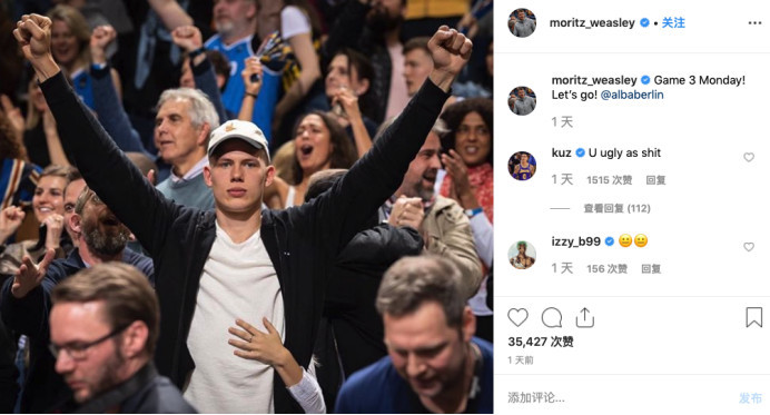 赛季结束,湖人队的瓦格纳回到了欧洲。在社交媒体上,瓦格纳晒出了自己观看柏林阿尔巴队比赛的画面,而看到这样一张照片,队友库兹马调侃,“你太丑了。”