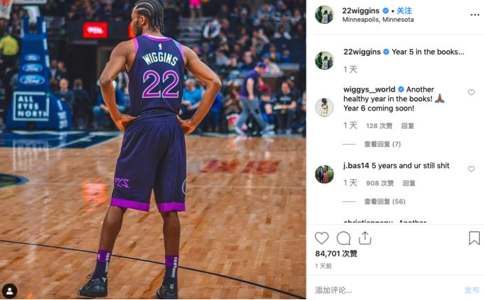 年纪轻轻就开始养生的维金斯,也结束了自己职业生涯的第五个赛季。在社交媒体上,维金斯晒出了一张自己在球场的照片,然后写道,“生涯第五个赛季结束。”
