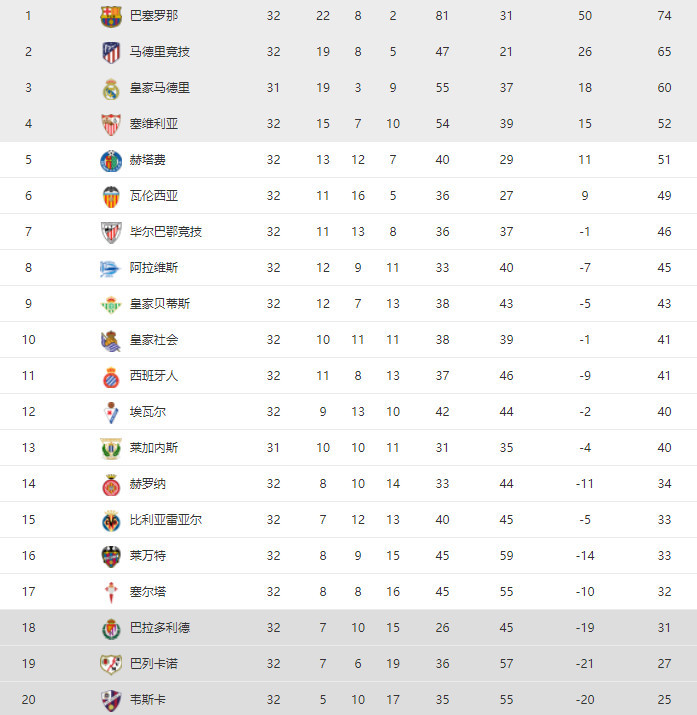 西甲第32轮比赛,如果要用一个词来形容,就是“众神归位”,所有的传统强队几乎已经快要到达他们最熟悉的位置了,格局,没有被打乱。