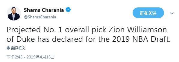 北京时间4月16日,杜克大学超级新星锡安·威廉森正式宣布参加2019年选秀。这也基本意味着2019年状元秀基本落在了他身上。威廉森在过去这个赛季在NCAA掀起了疯狂风暴,堪称NCAA史上最耀眼的大一新星之一。下赛季他要将天赋带到NBA赛场。