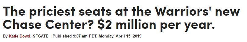下赛季,勇士的主场将从奥克兰甲骨文球馆搬到旧金山大通中心。勇士的新球馆将是全联盟最豪华的球馆之一,考虑到湾区富豪云集的情况,大通中心特意设立了年费达到200万美元的奢华包间,竟然在3月份就已经有30间被预订。