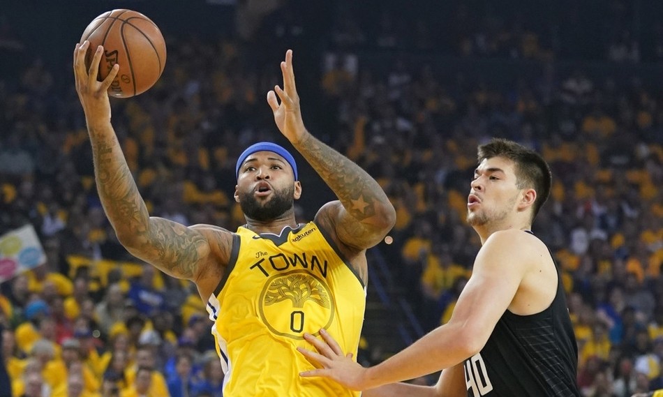 上一场比赛都是戏,库里的破雷阿伦的纪录,杜兰特和贝弗利在第一场比赛双双被驱逐出场,格林单节的爆发找回节奏,实际上这轮系列赛没有人们想的那么简单乏味。库里上来还是手感火热,连续投中包括一个三分球命中,不过很快意外发生,考辛斯在一次抢断的过程中因为左腿的落地滑到,直接自己叫暂停回到了更衣室。