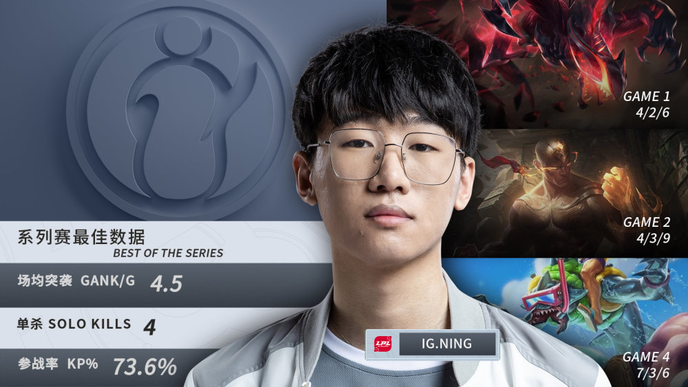 iG大腿!四次单杀完美发挥 Ning荣获系列赛最佳数据王