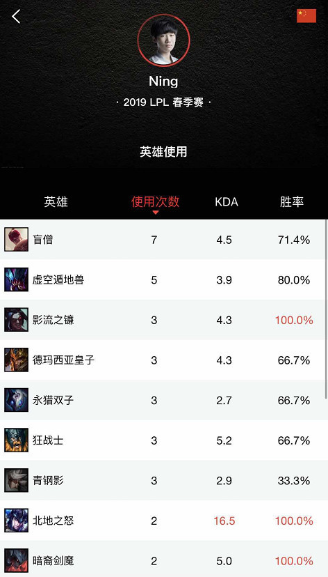 15个英雄和这些英雄的高胜率,都代表着宁王的英雄池之深,以及他个人实力的显著提升——在2017年LPL夏季赛,也就是宁王刚刚来到LPL舞台的这个时间,他整个夏季赛共计使用了11个英雄,除了蜘蛛、奥拉夫和挖掘机,其他英雄的胜率都十分之低,如今他得心应手的扎克,在当初甚至胜率为零。