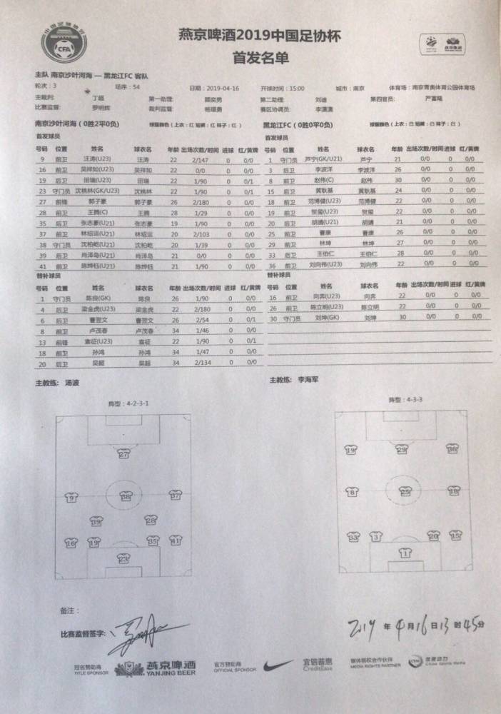 腾讯体育4月16日讯 足协杯第三轮已经打响,中乙球队南京沙叶河海主场对战中甲黑龙江FC队,本是一场普普通通的足协杯比赛,但是在双方提交的首发名单中却出现了问题。