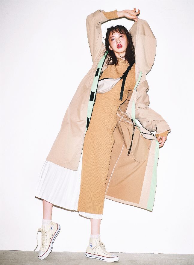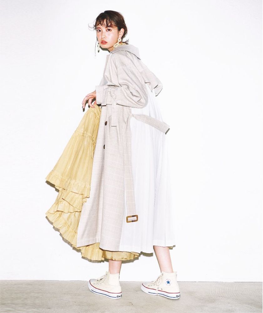 风衣的硬朗感搭配温柔的百褶设计,