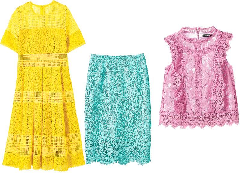 将蕾丝元素广泛运用在上衣、裙子等