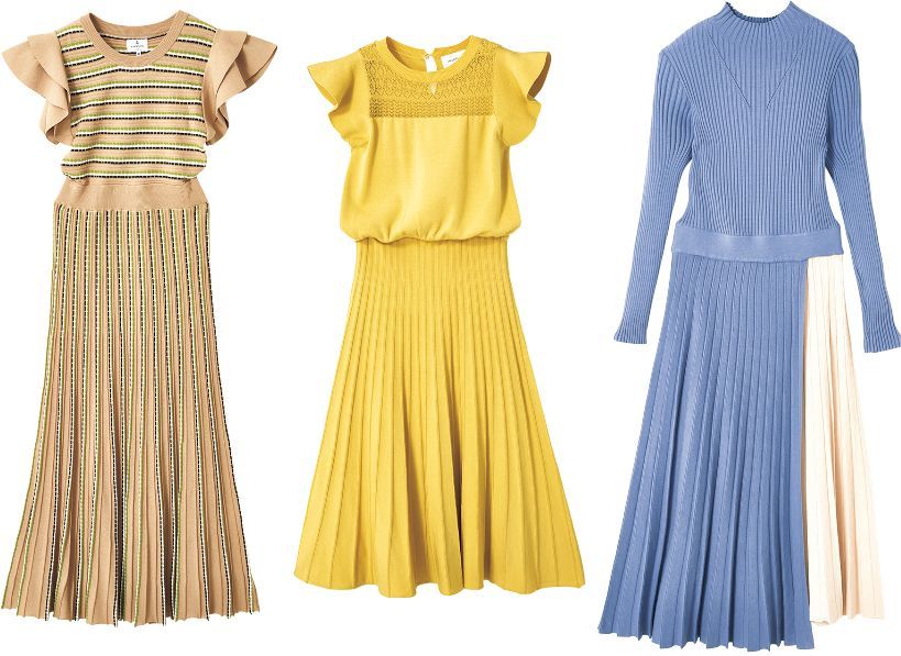 带有收腰的宽摆针织长连衣裙来啦!