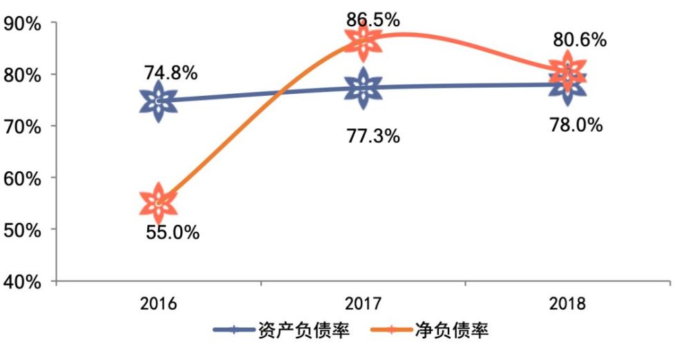 2018年,保利的资金管理能力有所增强,主要表现为全年累计实现销售回笼3562亿元,资金回笼率达88%,较2017年提升了2.5个百分点,保持在历史较高水平。此外,资产负债率为77.97%,基本保持稳定;净负债率为80.55%,同比降低5.8个百分点,资产负债结构合理,具备较强的抗风险能力。账面有息负债2636.6亿元,其中银行贷款、直接融资占比分别为71%和15%,有息负债综合成本仅约5.03%,具备突出的规模及成本优势。