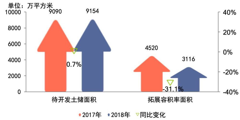 图:2017-2018年保利待开发面积及拓展容积率面积情况