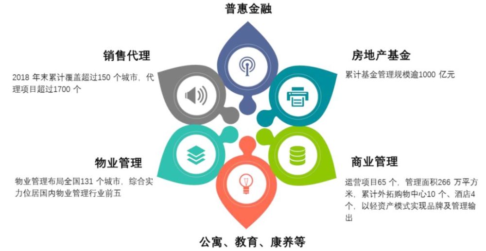 在多元化业务方面,保利重点培育两翼业务,围绕不动产投资开发,搭建覆盖物业管理、销售代理、商业管理等十余个综合服务板块,以及以房地产基金、普惠金融为主的不动产金融平台。在综合服务方面,保利物业管理布局全国131个城市,目前,保利物业的赴港上市进程也在推进之中;商业管理板块运营项目65个,管理面积266万平方米,累计外拓购物中心10个、酒店4个,以轻资产模式实现品牌及管理输出;公寓、教育、康养等板块也取得一定发展。不动产金融方面,保利累计基金管理规模逾1000亿元,累计投资项目超过150个。