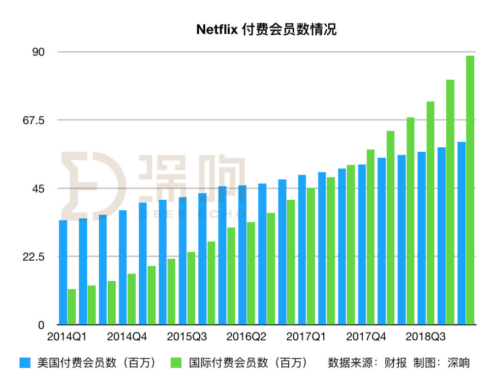 根据此前「深响」的计算,Netflix美国国内用户的单月ARPU值大约在11美元左右,国际用户的单月ARPU值却只有8美元左右,而且还是下滑的。