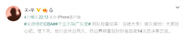 “没啥大事!谢天谢地!大家放心吧。接下来,他们会休息两天,然后养精蓄锐好好备战第14次总决赛之旅。”关辛在自己的社交平台上写道。据悉,在与深圳比赛结束之后的第二天,周鹏前往医院进行了细致的检查。检查的结果显示,周鹏的伤情并没有大碍,这无疑令广东的球迷们松了一口气。