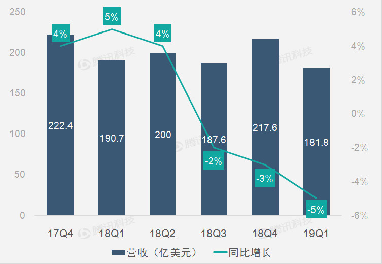 IBM第一季度营收为181.82亿美元,比去年同期的190.72亿美元下滑5%,经汇率变动调整后则同比下滑0.9%,不及分析师此前预期。汤森路透的调查显示,市场分析师此前平均预计IBM第一季度营收为185.1亿美元。