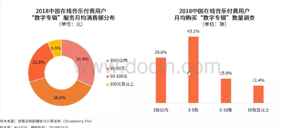 根据艾媒咨询的报告显示,2018中国在线音乐付费用户除了订阅包月服务外,亦会购买数字专辑。其中有43.1%的人会购买3-5张数字专辑。而在诸多粉丝型、实力型等多元艺人助推下,也有效激活了音乐付费的意愿。