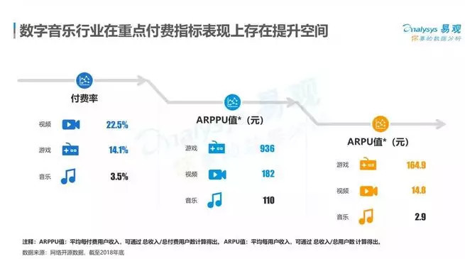 早在2016年,尼尔森就有报告指出,中国在线视频市场已经在世界上遥遥领先。对比音乐行业,其抢先看、免广告、独家内容等权益更具有吸引力,会员与非会员差异巨大。这导致视频用户的ARPU值超过音乐用户的5倍。