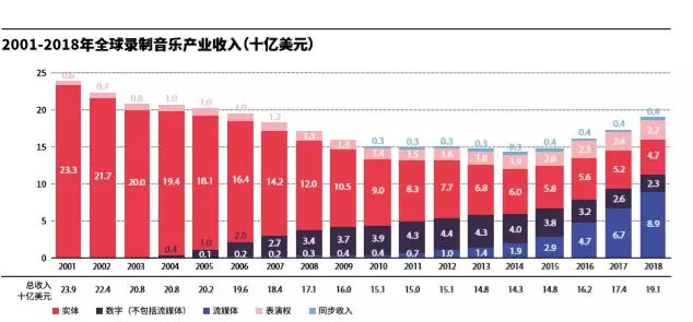 不过,整体来看,音乐产业从传统唱片工业向数字音乐的产业转型已经初见成效。据《IFPI2019全球音乐报告》显示,2018年全球录制音乐产业收入增长9.7%,达到191亿美元,其中数字收入整体增长了21.1%,达112亿美元,有史以来首次超过100亿美元大关,目前占录制音乐总收入的58.9%。值得注意的是,数字音乐现在在全球38个市场的音乐总收入中的占比过半。