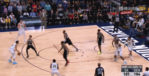 在第四节比赛中,穆雷独挑大梁,9投8中三分球3中2罚球3中3,单节轰下21分,他一个人在第四节的得分,只比马刺全队第四节得分少两分。掘金在穆雷的带动下,以114-105逆转马刺。