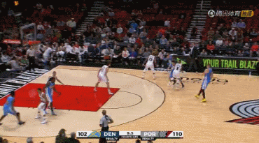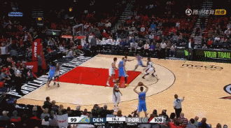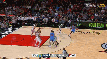 终场前31.3秒,开拓者凭借迈耶斯-伦纳德的进球领先掘金12分。穆雷开始行动,他在弧顶位置干拔三分命中。