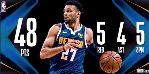 是穆雷率领掘金反超比分,也是穆雷为掘金守护领先。比赛最后3分钟,穆雷连中三球,为掘金锁定胜局。