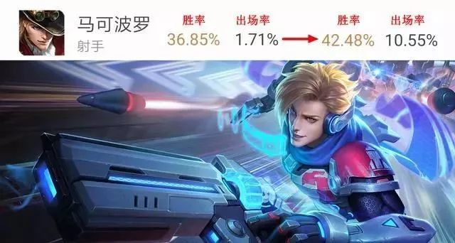 而调整的十九位英雄中,有部分在更新首日强势崛起或跌落谷底,其中加强的一票英雄中,除了孙尚香变动不大外,胜率提升1.5%左右的英雄有三位,分别是公孙离、李元芳和“超级兵”宫本武藏;胜率提升2%左右的英雄有四位,分别是杨戬、诸葛亮、露娜和芈月;而本次调整胜率涨幅最高的则是马可波罗,一夜之间飙升了近6%,不仅如此登场率同样暴涨,涨幅高达9%,虽说胜率依旧排名全峡谷垫底,但也终于突破了40%大关。(PS:二哈改版加强后胜率不升反降,预计玩家还要时间适应!)
