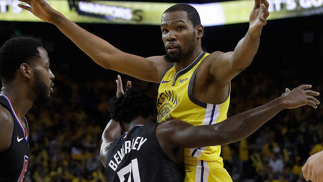 贝弗利疯狗式的防守影响了杜兰特吗?虽然贝弗利曾两次入选最佳防守阵容,但是他的身高只有1.85米;而两次当选总决赛MVP的杜兰特,他的官方身高达到2.11米。