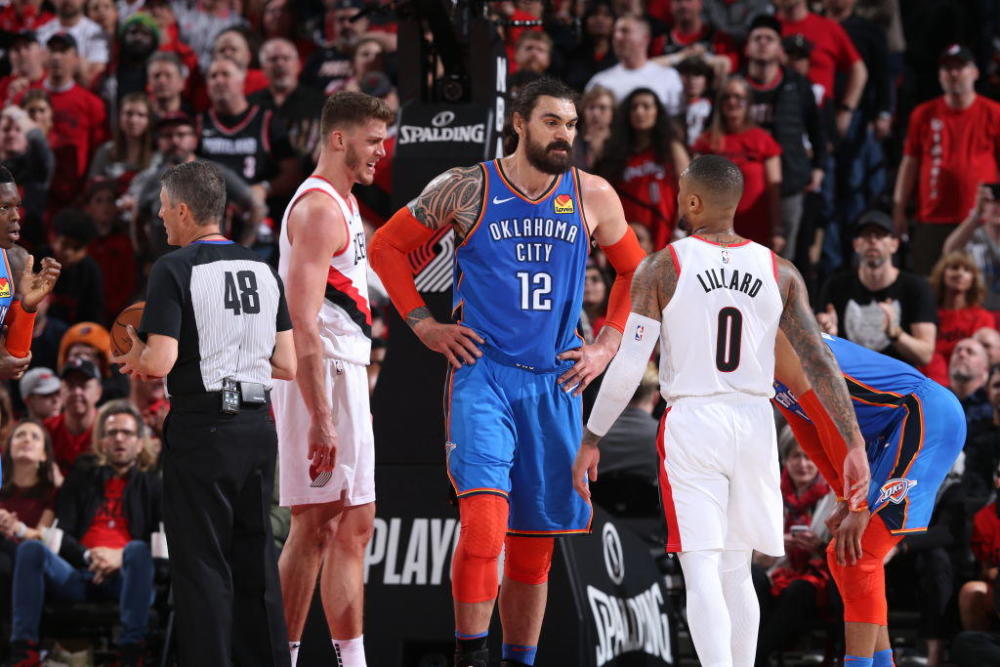雷霆中锋亚当斯在今天比赛中的一次换位防守引发了利拉德的不满,双方发生了一些口角。亚当斯赛后在谈到那次防守时说道:“那种情况真的很奇怪,那个情形是有可能造成有人受伤,但那真的不是我的问题,那是他们的大个球员示意要掩护利拉德打挡拆,利拉德朝我这个方向跑过来,然后我们就撞到一起了,而利拉德却对我生气。”
