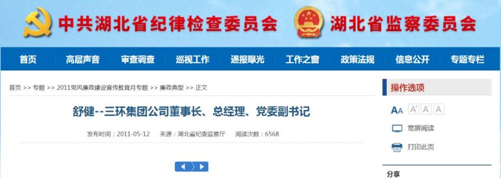 其中最让政知道(微信ID:upolitics)意外的称号,是舒健在2011年被湖北省纪委监察厅当做“廉政典型”进行宣传。