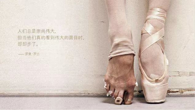 “芭蕾脚”伤痕累累,却在漂亮的芭蕾舞鞋下支撑起生命的优雅。对实现了自我超越和生命成长的人来说,一般人无法承受的苦难带给他们的是实现了梦想、由内而外的巨大喜悦。那些常人看到的磨砺与苦难,正是他们得到幸福的来源。