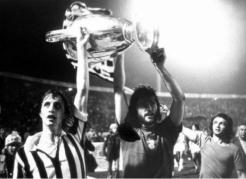阿贾克斯也是一支祖上阔绰的球队,1971-73年,在克鲁伊夫的带领下,阿贾克斯连续3年夺得欧冠冠军,开创了皇马之后的第二个王朝时代。1972年,他们更是以势不可挡之势拿下了能拿下的所有冠军——荷甲,欧冠,荷兰杯,欧洲超级杯和丰田杯,成就了前无古人的五冠王。在当时那个被荷甲巨人支配的欧洲足坛,他们也曾经是最惹不起的存在。