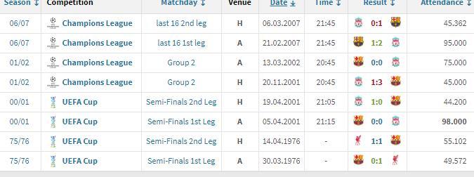 历届巴萨与红军的对战数据 淘汰赛数据红军占优