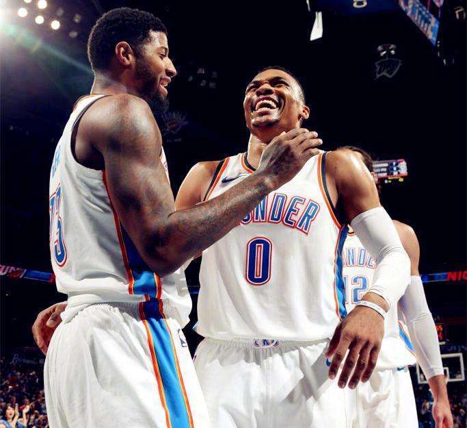 雷霆队的威少与乔治这个赛季真的已经相当努力了,威少常规赛场均22.9分11.1篮板10.7助攻1.95抢断0.45盖帽,是联盟三双王+助攻王;乔治场均28分8.1篮板4.1助攻2.22抢断0.44盖帽,是联盟得分榜第二,抢断王,是DPOY的有力争夺者,可因为伤病这两人都无法发挥最佳的状态,如今雷霆已经0-2落后开拓者了,这两人有心无力,看起来雷霆本赛季难阻首轮出局魔咒了。