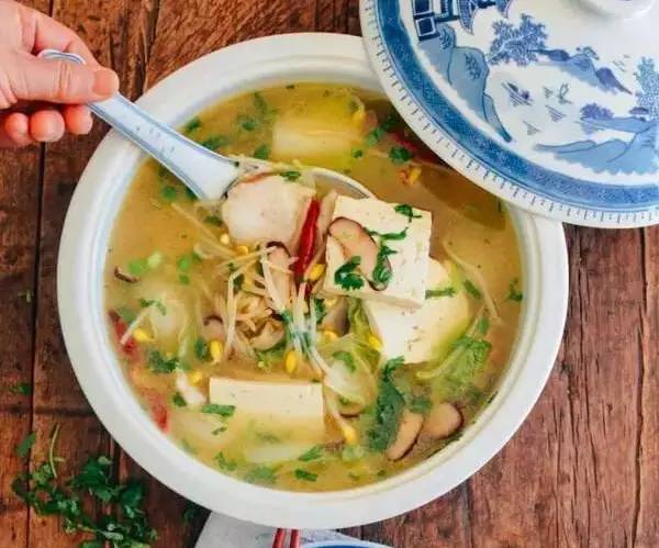 材 料:老豆腐、鱼片、白菜、豆芽、香菇、姜片、蒜瓣、葱花、香菜、干辣椒、胡椒粉、盐、醋适量。