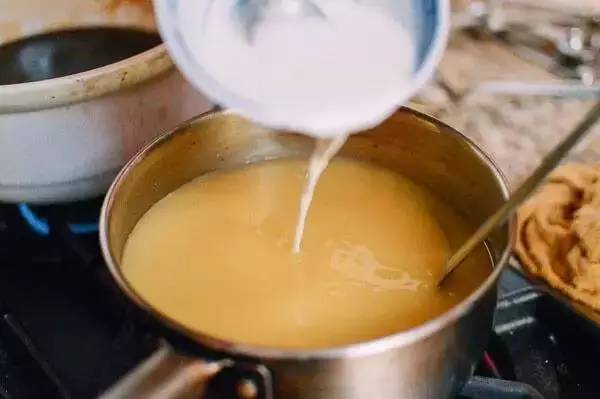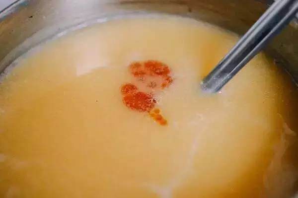步 骤:1.玉米面加凉水煮开,期间要用勺子不停搅拌,以防粘锅。