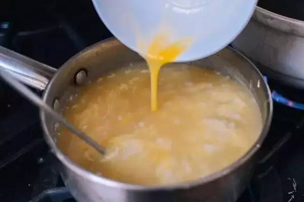 2.加入适量牛奶和鸡蛋液,注意少量多次,期间一定要不停搅动。