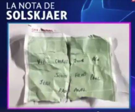 在比赛期间,曼联主帅的索尔斯克亚给了拉什福德一张战术小纸条,示意其后的变阵打法。但拉师傅看完纸条后并没有做好“安保措施”,在一次对抗过后就随意地扔在了草地当中。这一幕恰巧被巴萨门将特尔施特根看到。