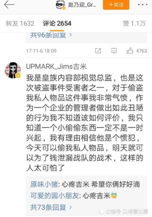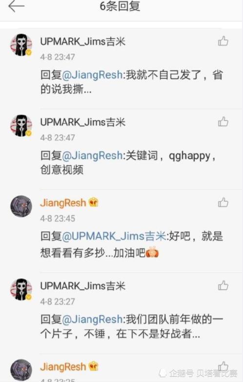 不过值得一提的是,这位吉米总监,在2017年曾是RNG的内容部视觉总监,当时RNG发生了一起内部物品偷盗事件,简单来说就是内部人偷了别人的东西,这件事一度引发了RNG当时的品牌总觉赵乃迎的被迫离职,因为是他揭发了RNG的COO偷盗事件,这位吉米就是那时候赵乃迎的支持者,因为他的东西也被盗了,他和赵乃迎一起离开了RNG。简单来说,就是之前在rxg当视觉总监,被偷了东西,现在出来了,发现给qg做的片子又被RNG抄了。
