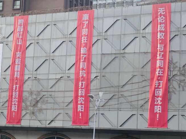 沈阳球迷巨幅标语喊话辽篮将士:突破疆局打回主场
