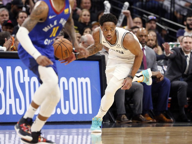 德罗赞上半场7投仅1中,但他在第三节苏醒,单节9投7中轰下19分。其中在三节还剩8分多钟,德罗赞接到阿德传球,他坚决突入篮下,迎着约基奇就是一个拉杆暴扣,掘金中锋无可奈何。