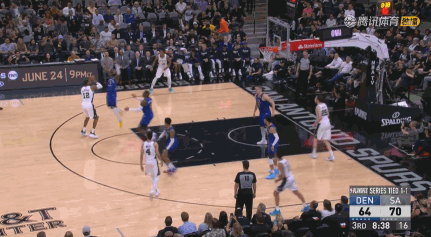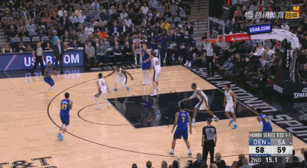 上半场表现最出色的球员是德里克-怀特,他15投11中轰下26分,多次用突破撕破掘金的防线。首节结束前3分钟,怀特底角接球,然后突破杀入禁区,在两名防守球员的干扰下依然轻松上篮得手。