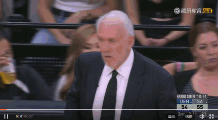 半场结束前2分多钟,波波维奇为了打乱掘金的进攻节奏,祭出了“砍鲨战术”。波帅在场边大声喊着让队员犯规,普拉姆利走上罚球线,结果他两罚不中,马刺获得球权。