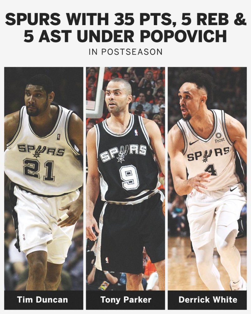 半场结束,怀特轰下26分,他成为了波波维奇执教马刺以来第3位能够在半场至少得到26分的球员,另两人分别是邓肯和帕克。吉诺比利季后赛半场得分最高纪录是22分。而在第四节,怀特再得10分,更是为马刺锁定胜局。